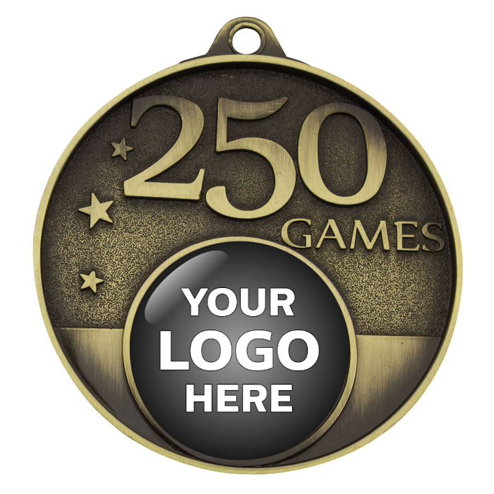 The 250 Games Milestone Medal is a perfect way to recognise the dedication and achievements of your long-standing players. Finished in antique gold and measuring 52mm, this standout medal is both meaningful and eye-catching. Price includes free engraving, free logo centre, and a neck ribbon in your choice of colour.